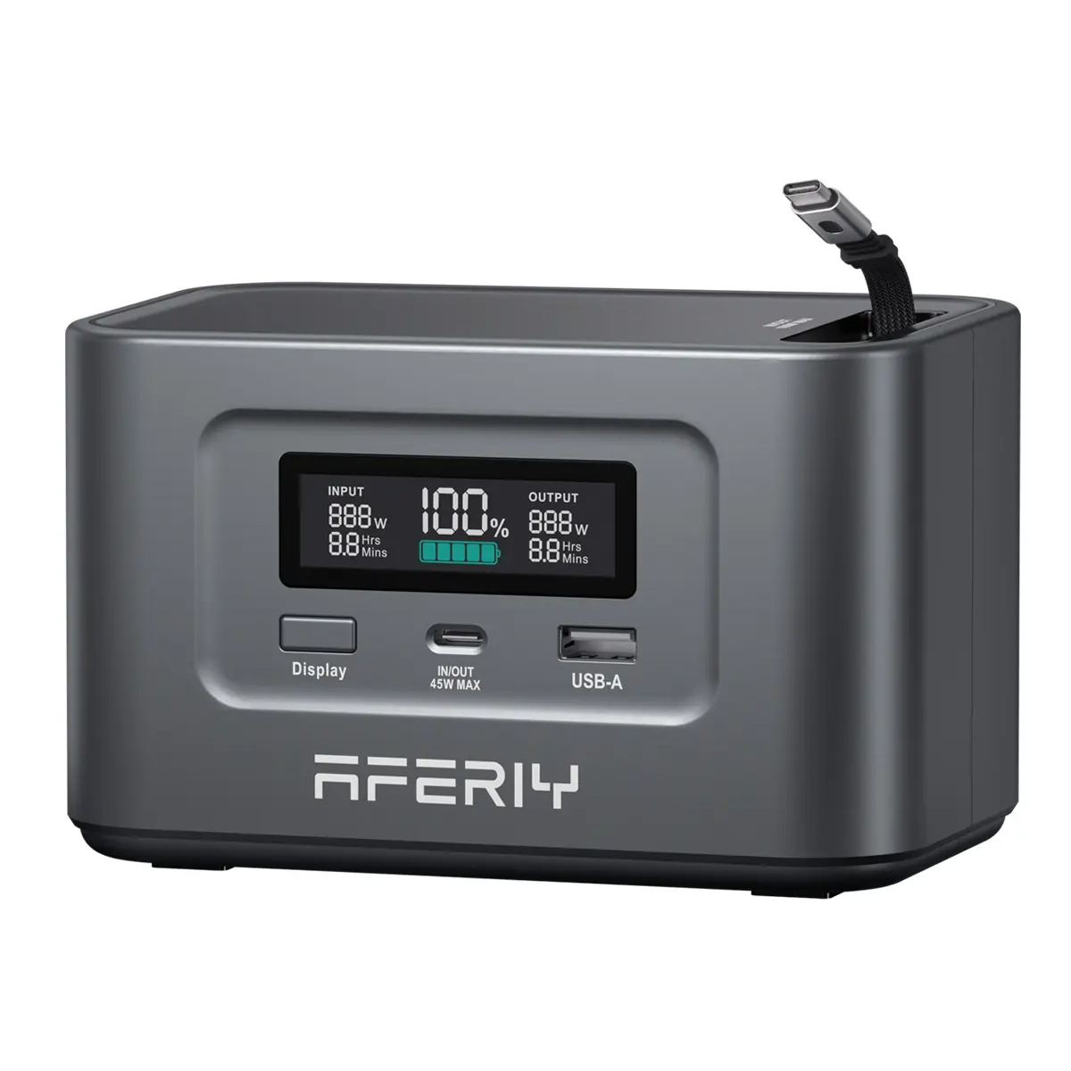 Die AFERIY Nano100 Powerstation ist eine besonders kompakte Stromquelle für alle, die auch unterwegs nicht auf Energie verzichten möchten. Mit einem Gewicht von rund 1100 Gramm und einer Kapazität von 99,2 Wattstunden (entspricht etwa 31.000 mAh) ist sie klein genug für den Rucksack, die Fahrradtasche oder sogar das Handgepäck.
