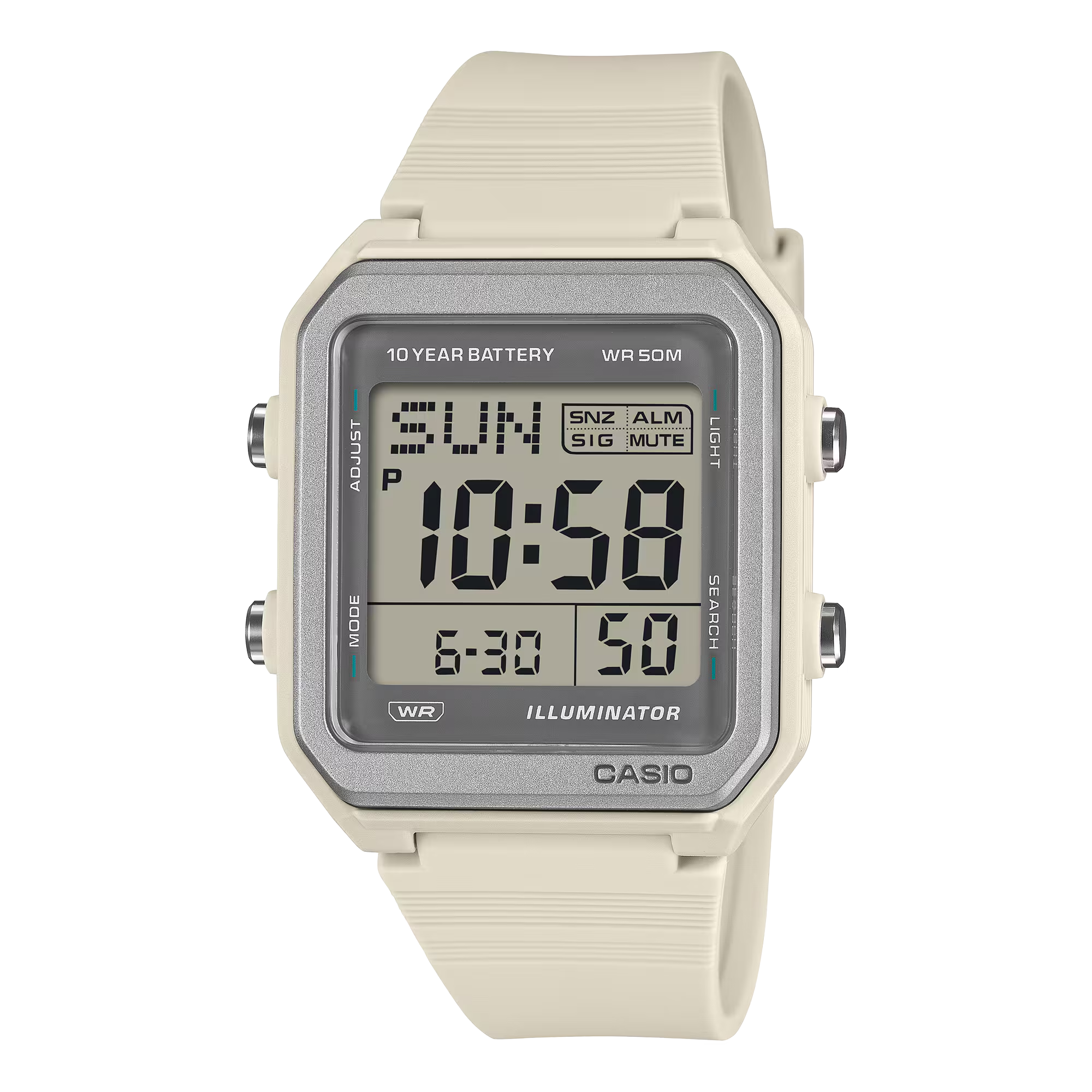 Lass dich von der simplen Optik nicht täuschen. Casio hat in dieses kleine Kunstharz-Gehäuse eine Funktionsvielfalt gepackt, die man in dieser Preisklasse normalerweise lange suchen muss. Herzstück der Alltagstauglichkeit ist die gigantische Batterielaufzeit. Casio verspricht, dass die verbaute CR2032-Knopfzelle satte zehn Jahre durchhält. Einmal ans Handgelenk geschnallt, hast du also für ein ganzes Jahrzehnt Ruhe. Mit einer Wasserdichtigkeit von 50 Metern (5 Bar) macht die Uhr zudem jeden Regenguss, die Dusche und auch das Schwimmen im See problemlos mit.