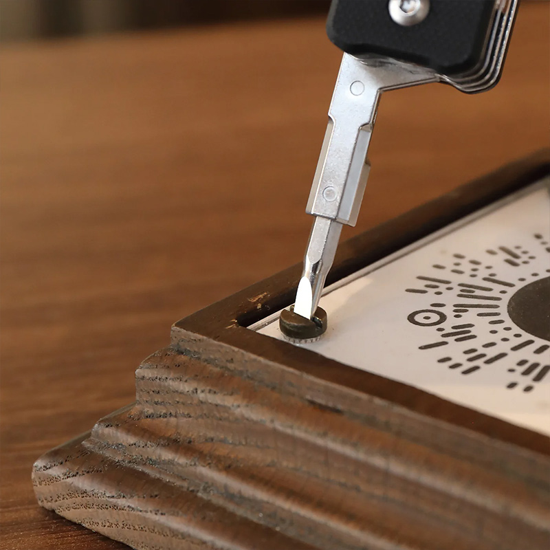 Besonders praktisch ist das integrierte Schraubersystem mit Bits, das dem Knight K30 zusätzliche Vielseitigkeit verleiht – etwa für Brillen, kleinere Elektronik oder lose Schrauben an Ausrüstung und Alltagsgegenständen. So wird aus dem Taschenmesser ein kompakter Allrounder für viele typische Kleinstaufgaben.