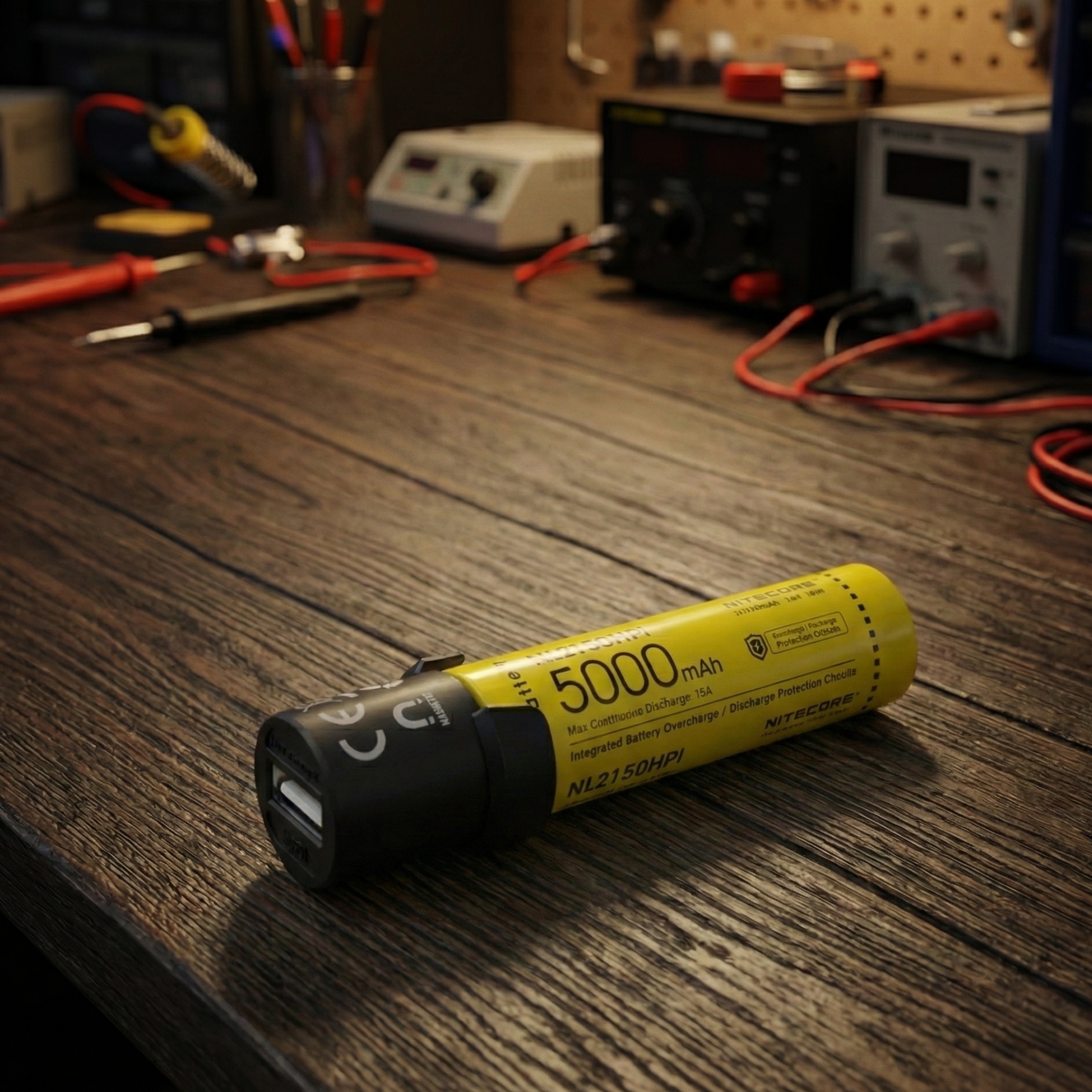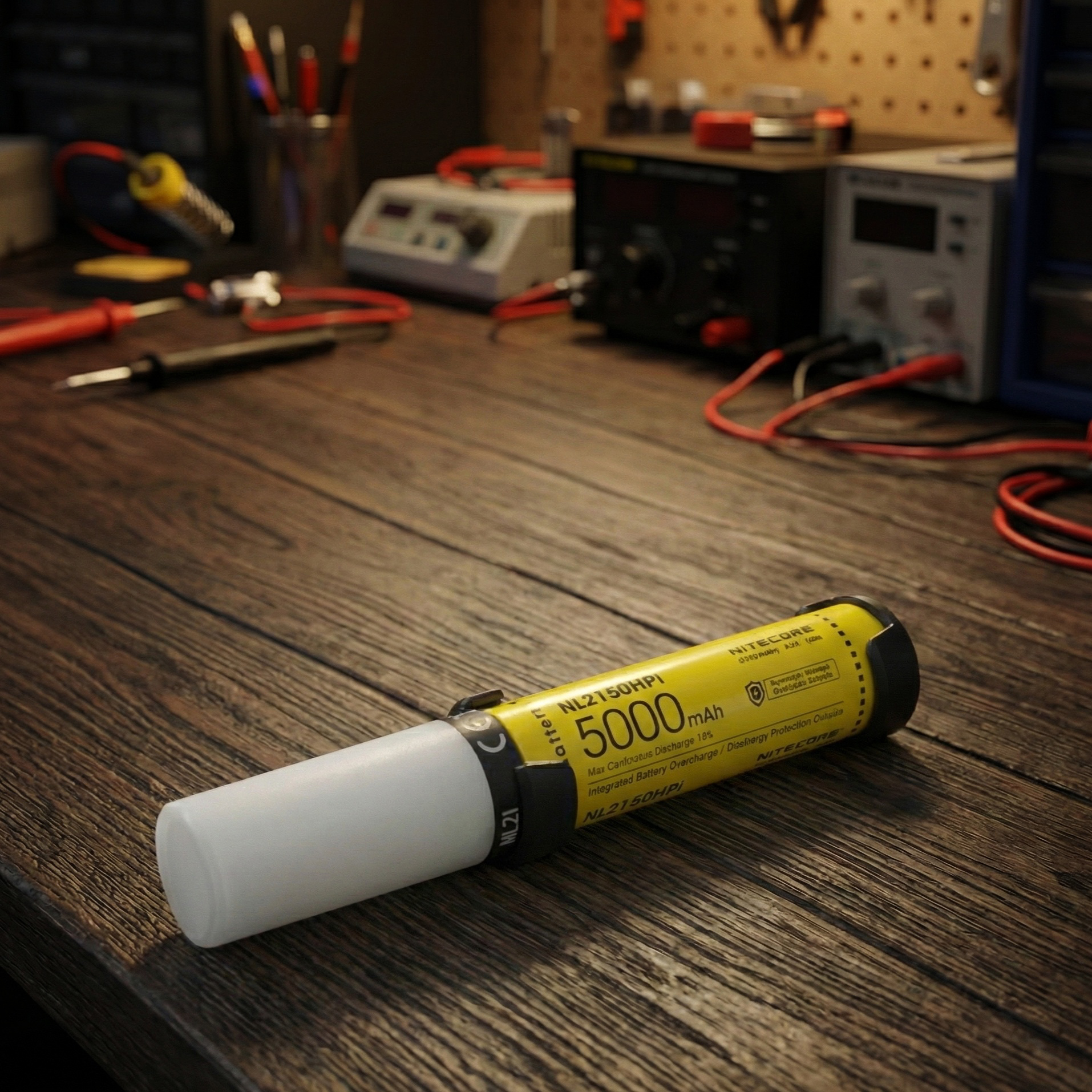 Kernstück ist ein 21700-Lithium-Ionen-Akku der i-Series vom Typ NL2150HPi mit 5000 mAh Kapazität und bis zu 15 A Entladestrom. Diese Zelle bietet eine höhere Energiedichte als klassische 18650-Akkus und dient als zentrale Stromquelle für alle Module des Systems. Grundsätzlich lässt sich das System auch mit anderen 21700-Akkus nutzen, sinnvoll und vollumfänglich funktioniert es jedoch vor allem mit den i-Series-Zellen von Nitecore, da nur diese die vorgesehenen Schutz- und Kommunikationsfunktionen unterstützen.