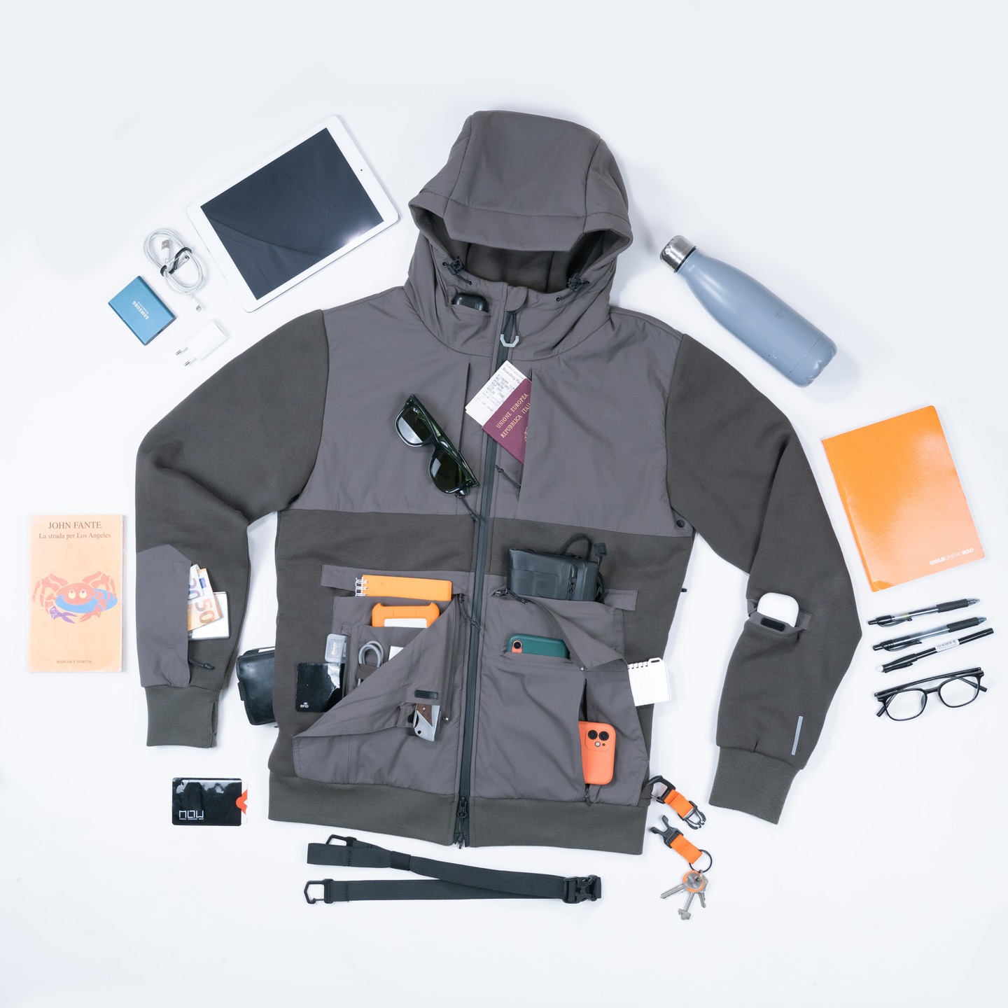 Der NOMADE 58 All in one Daily Travel Hoodie von MOW WEAR kombiniert funktionales Design mit der Vielseitigkeit, die EDC-Fans schätzen. Mit 28 Taschen, 58 Features und nachhaltigen Materialien bietet der Hoodie eine Lösung für alle, die ihre Ausrüstung organisiert, sicher und körpernah transportieren möchten.