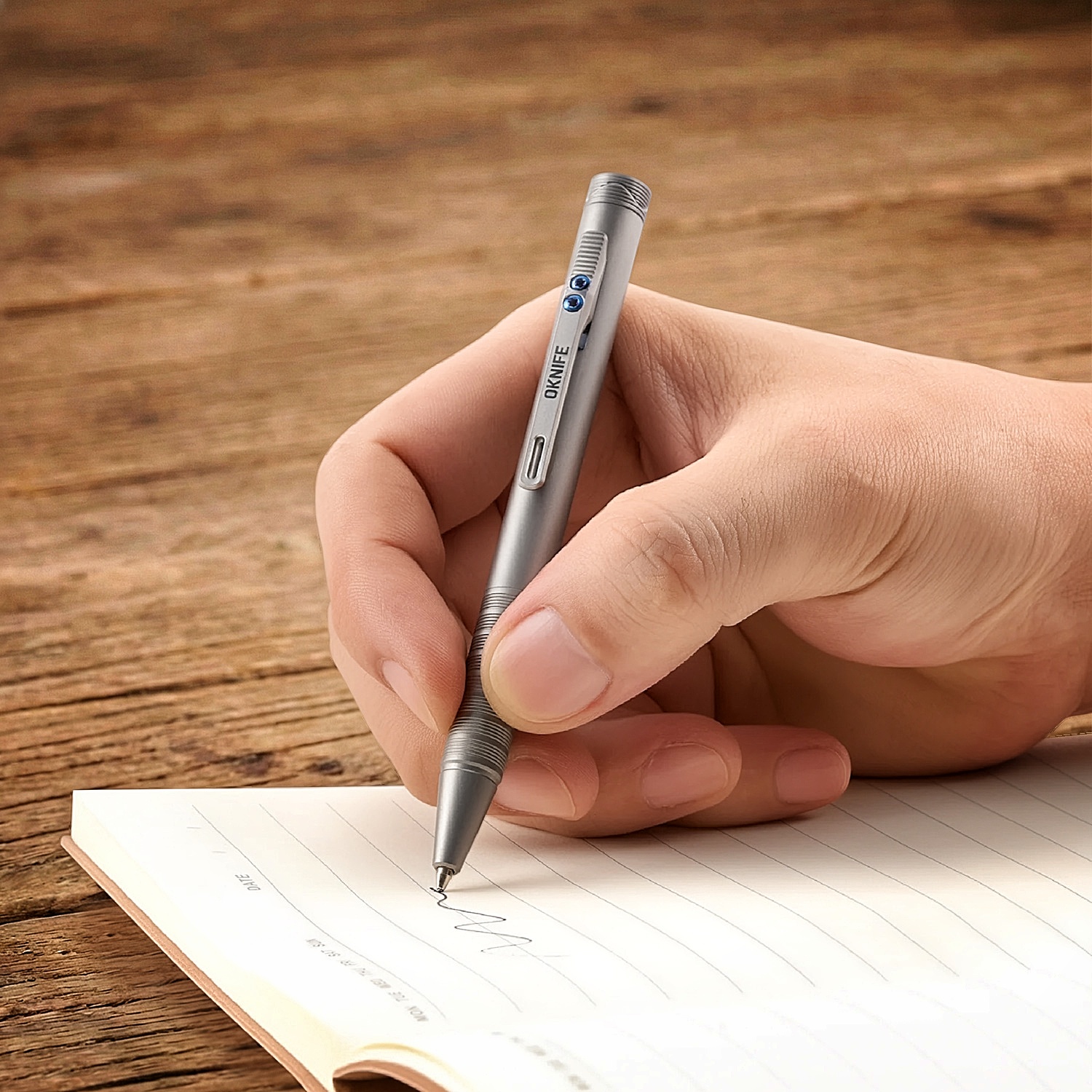 Damit man beim Schreiben nicht abrutscht, hat OKnife an der Griffzone dezente Anti-Slip-Rillen eingefräst. Sie bieten Grip, ohne die minimalistische Optik zu stören.