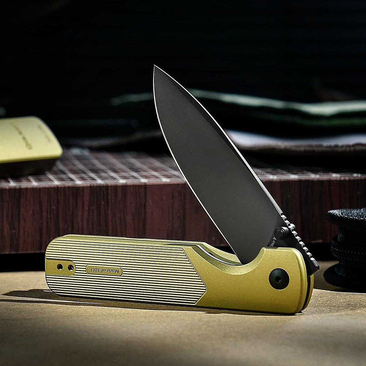Die Mechanik setzt auf ein Keramik-Kugellager, wodurch die Klinge weich und kontrolliert aus dem Griff läuft. Das Öffnen ist sowohl über Daumenpins als auch über einen Front-Flipper möglich, was unterschiedliche Vorlieben abdeckt. Ein Frame Lock sorgt für eine stabile Arretierung und vermittelt Sicherheit beim Arbeiten.