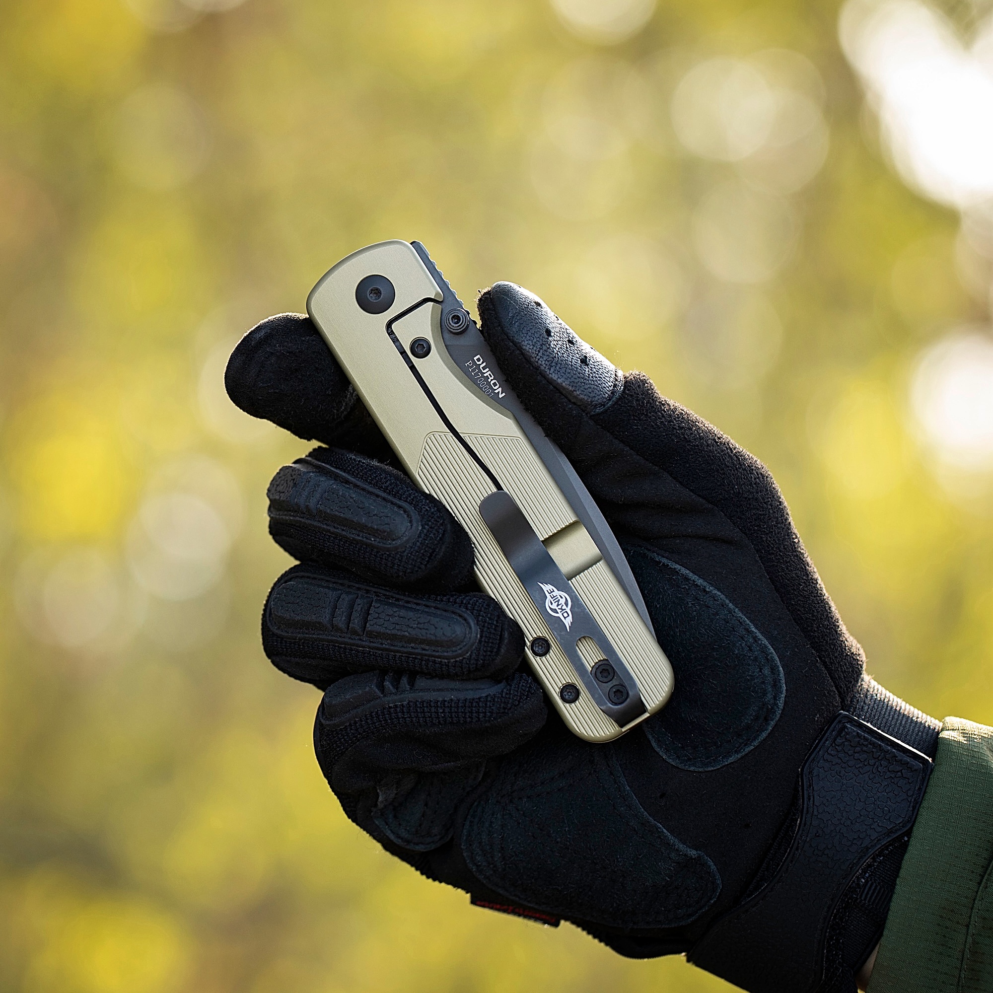 Das Duron folgt der klaren Formsprache, die OKnife bereits mit dem Xen-OAL eingeführt hat. Der Griff besteht erneut aus OAL Super Aluminum, einer speziellen Aluminiumlegierung mit hoher Festigkeit. Die anodisierte Oberfläche schützt vor Kratzern und sorgt für eine dezente, matte Optik.