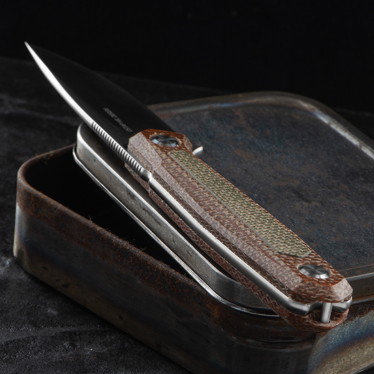 Das Design bleibt dabei bewusst schlicht: keine Daumenrampe, nur ein dezentes Jimping am Klingenrücken, keine aggressive Klingenspitze, kein taktischer Überbau. Stattdessen steht der Gedanke im Vordergrund, ein Messer zu schaffen, das sich unauffällig trägt, angenehm in der Hand liegt und zuverlässig schneidet.