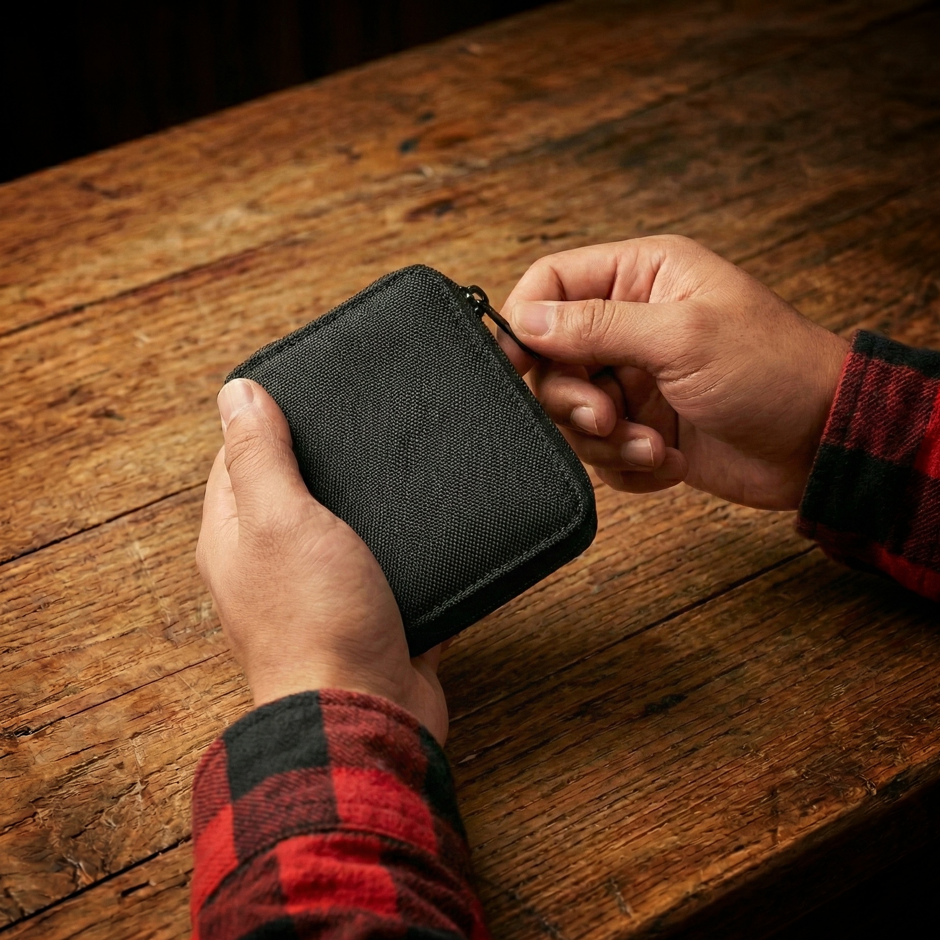 Die Außenhülle der PC1 besteht aus verschleißfestem 500D-Nylon oder X-Pac-Material, das für seine hohe Reißfestigkeit und Wetterbeständigkeit bekannt ist. Das macht die Geldbörse interessant für Outdoor-Einsätze, Reisen und den harten EDC-Alltag in Hose, Taschen oder Rucksack. Saubere Nähte und verstärkte Kanten ergänzen den strapazierfähigen Eindruck und tragen zur Langlebigkeit bei.