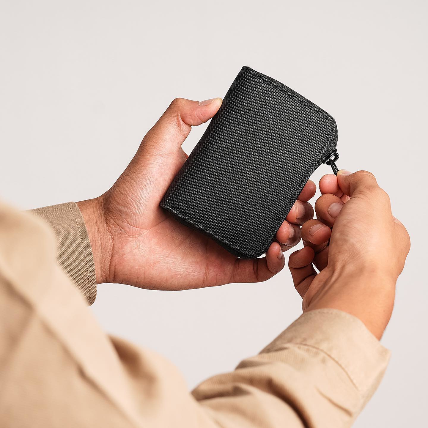 Rundum wird das Kartenmodul von einem YKK-Reißverschluss geschlossen, der für Zuverlässigkeit und geschmeidigen Lauf bekannt ist. Im Gegensatz zu offenen Elastic-Wallets oder reinen Card Sleeves verhindert der umlaufende Zipper, dass Karten beim Sitzen, Laufen oder im Rucksack herausfallen. Gleichzeitig schützt die geschlossene Bauweise den Inhalt vor Staub und leichten Witterungseinflüssen.