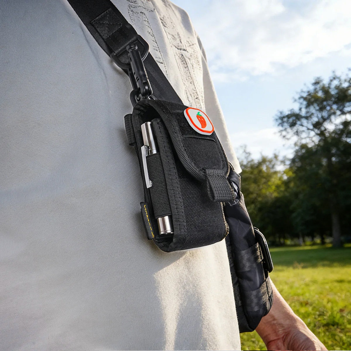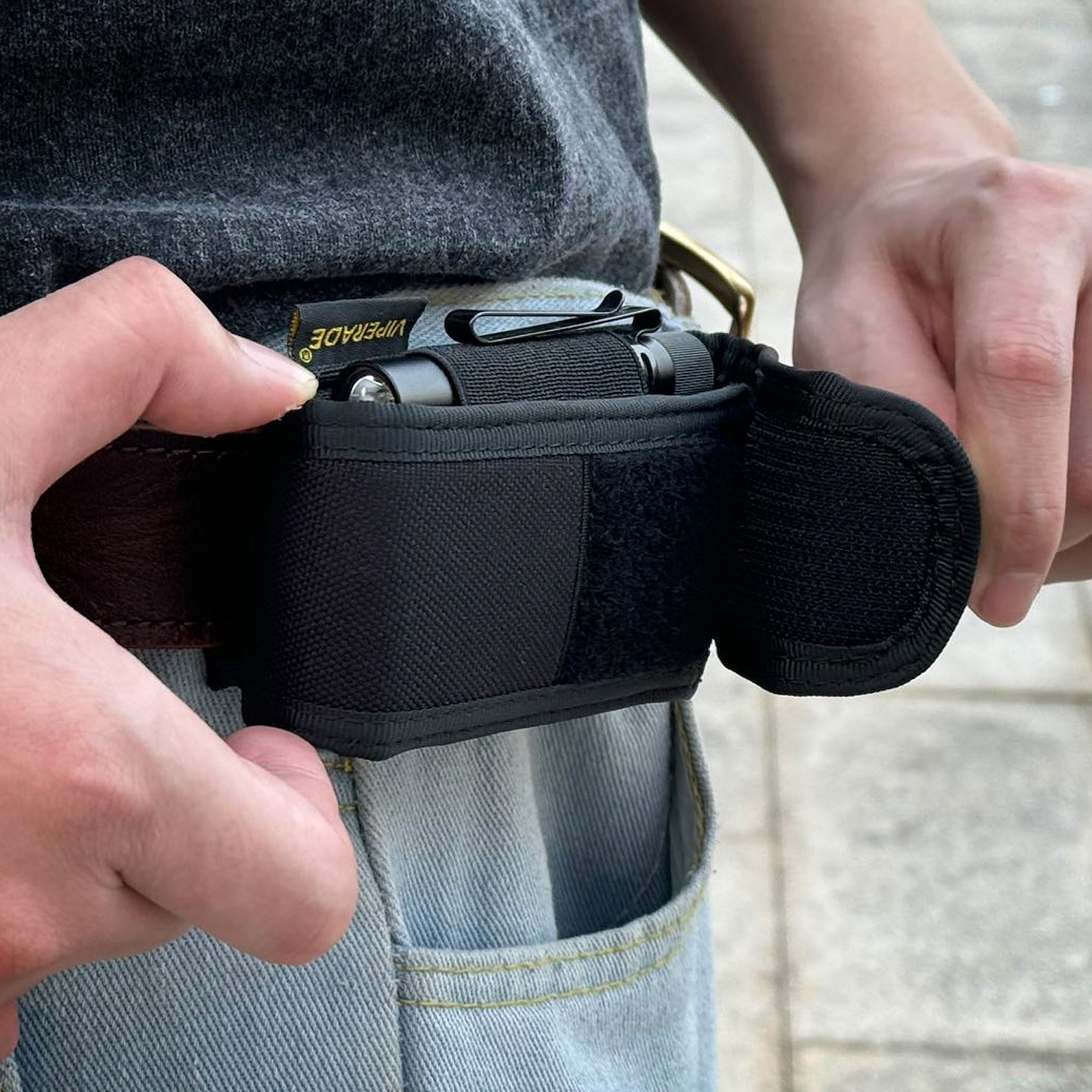Ergänzt wird das Setup durch elastische Außenschlaufen auf beiden Seiten des Holsters, die Platz für eine kleine Taschenlampe, einen Stift oder eine schmale Prybar bieten. Kleine, leistungsstarke Taschenlampen wie die ACEBEAM Pokelit AA, die Lumintop Tool AA 3.0 oder die Nitecore MT1A Pro passen hier perfekt. So entsteht ein kompaktes EDC-Mini-Setup, das mehr kann als nur ein Multitool zu transportieren.