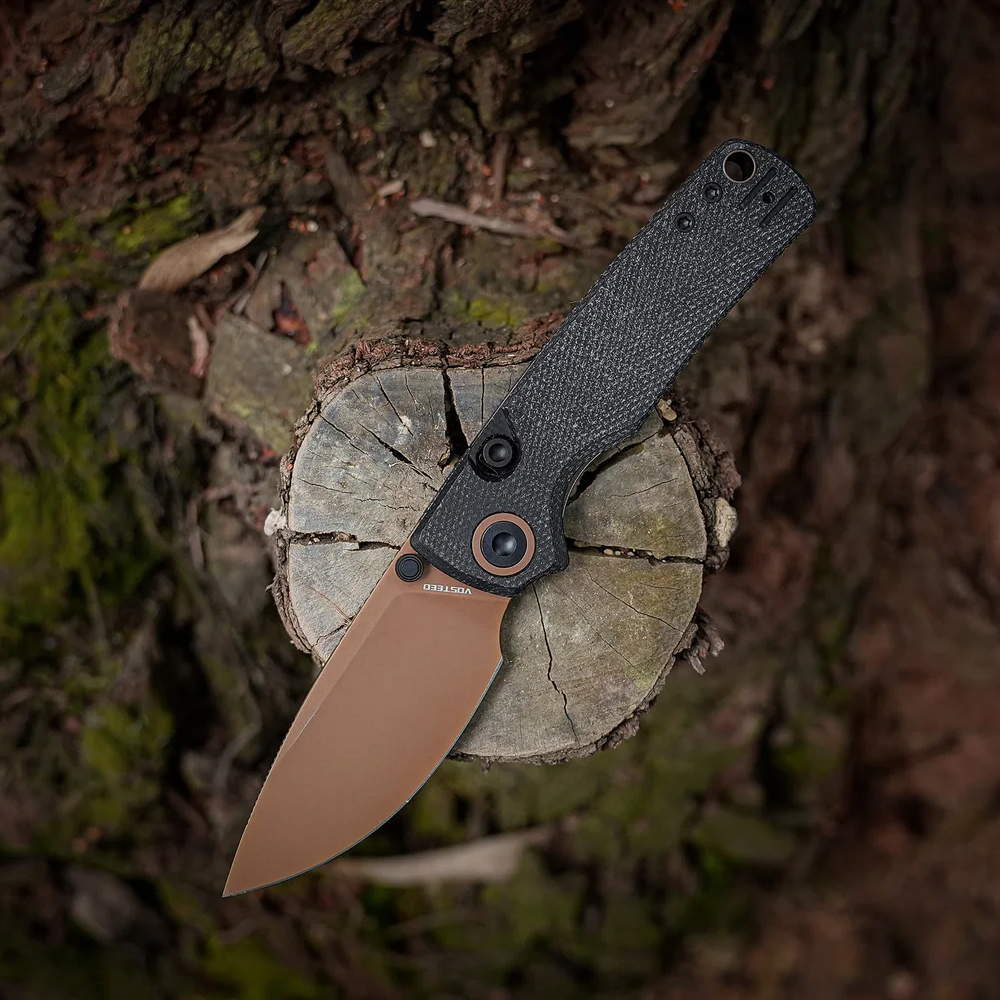 Das Porcupine bleibt ein Modell, das für praxisorientierte Funktion und klare Gestaltung steht. Neben der hier gezeigten Version mit Copper Dune Finish und schwarzem Micarta-Griff sind weitere Varianten mit G10 oder farbigem Micarta erhältlich. Mit der neuen Öffnungsmechanik und den strukturierten Micarta-Griffen dürften die neuen Versionen des Vosteed Porcupine bei EDC-Fans sehr guten Anklang finden.