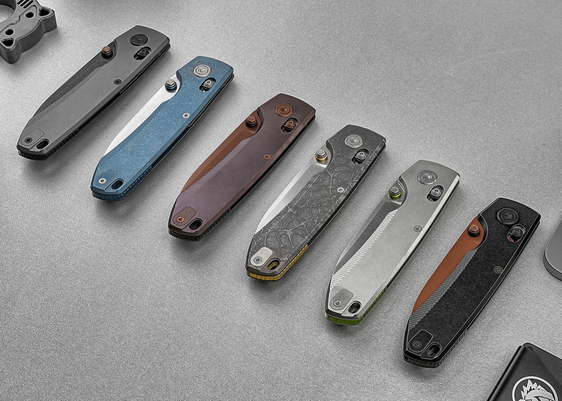 Daneben bietet Vosteed fünf weitere Ausführungen auf 154CM-Basis an, die sich primär durch verschiedene Finishes und Materialakzente unterscheiden. Zur Auswahl stehen zum Release diese Ausführungen des Raccoon TiSlim: