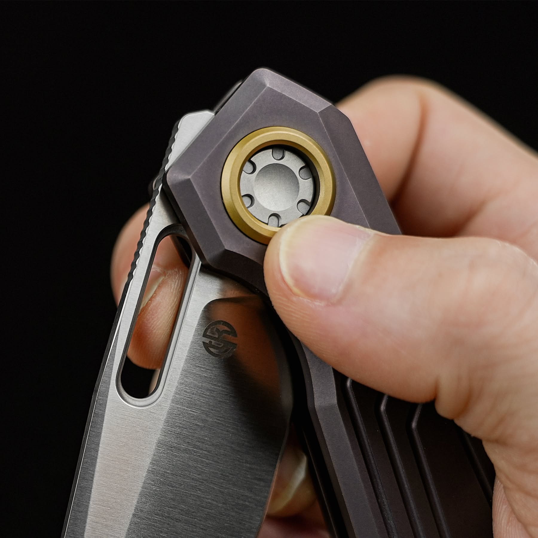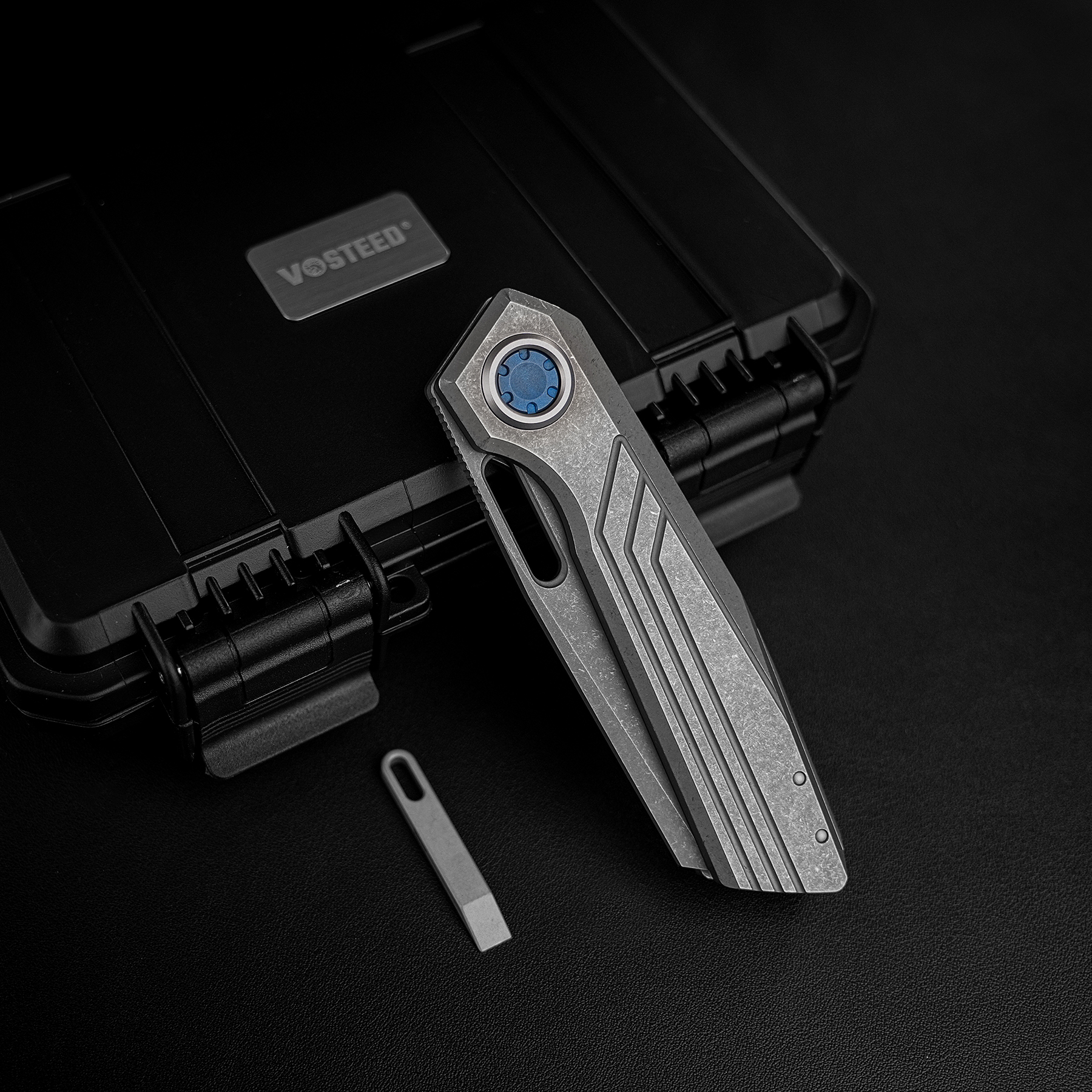 Die Architektur des Xeno ist dabei bis ins Detail durchdacht. Ein langer Titanium-Backspacer bildet das strukturelle Rückgrat des Messers und versteift den Rahmen über die gesamte Länge. Passend dazu ist der 3D-CNC-gefräste Titanium-Pocket-Clip nicht einfach gebogen, sondern gezielt modelliert, um den fließenden Linien des Griffs zu folgen und beim Ziehen aus der Tasche maximale Kontrolle zu bieten.