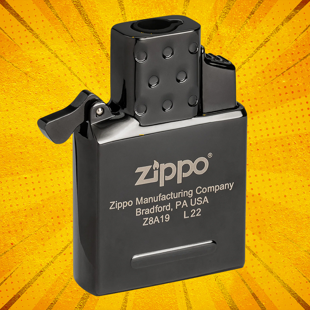 Das Black Single Torch Insert kombiniert die gewohnte Form eines klassischen Zippo-Einsatzes mit einer einflammigen Jetflamme, die sich per Piezo-Zündung auf Knopfdruck aktivieren lässt. Die blaue Flamme erreicht Temperaturen von über 1 260 °C (2 300 °F) und bleibt dabei geruchslos. Die Flammenhöhe ist individuell einstellbar.